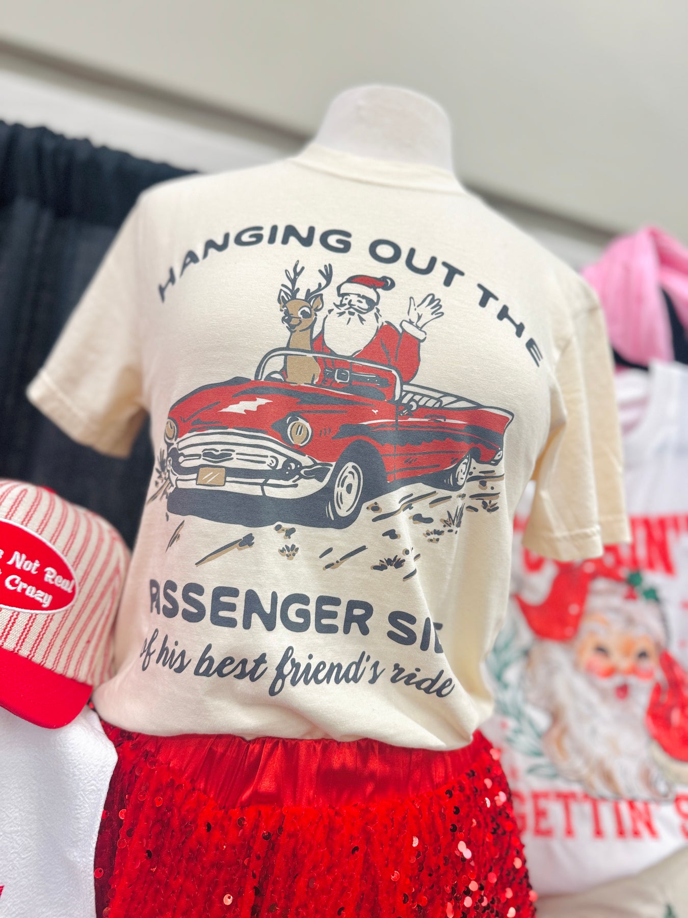Bring holiday vibes with a hilarious twist in this festive tee featuring Santa and Rudolph. Perfect for spreading cheer (and laughs) while keeping cozy and comfy all season long.