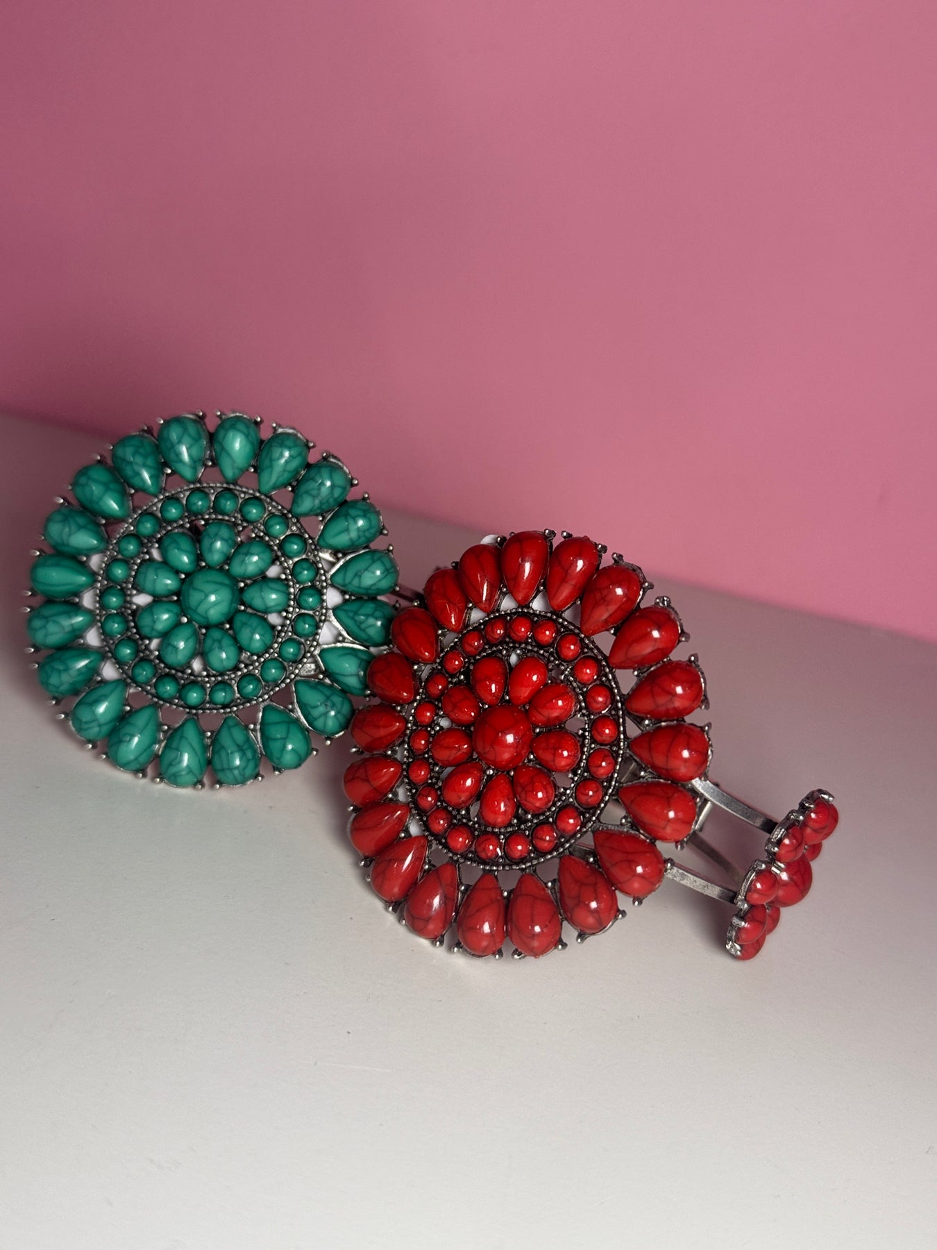 "Be a trendsetter with this snazzy cuff bracelet! Made from shimmering turquoise, this bling will make you the envy of any room. And you'll stay comfy wearing it all day, because style doesn't have to come with a sacrifice. (Wink!)"