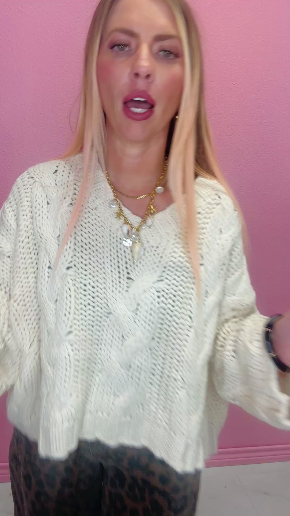 Your new cold-weather BFF has arrived. The Cozy Classic Sweater is the perfect cream chunky knit that’s equal parts timeless and effortlessly stylish. Dress it up with tailored trousers or keep it casual with leggings—either way, you’ll be living in it all season long. Wide and oversized cropped length- Ashley is shown wearing a small. Feel free to size down!