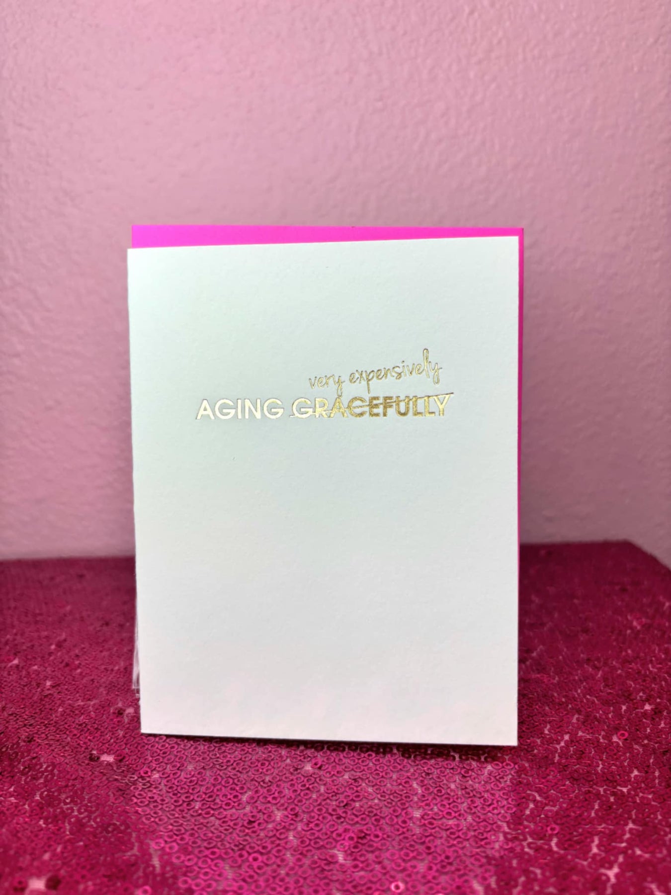 Our "Aging Gracefully" card is letterpress printed on a vintage printing press in sunny California.