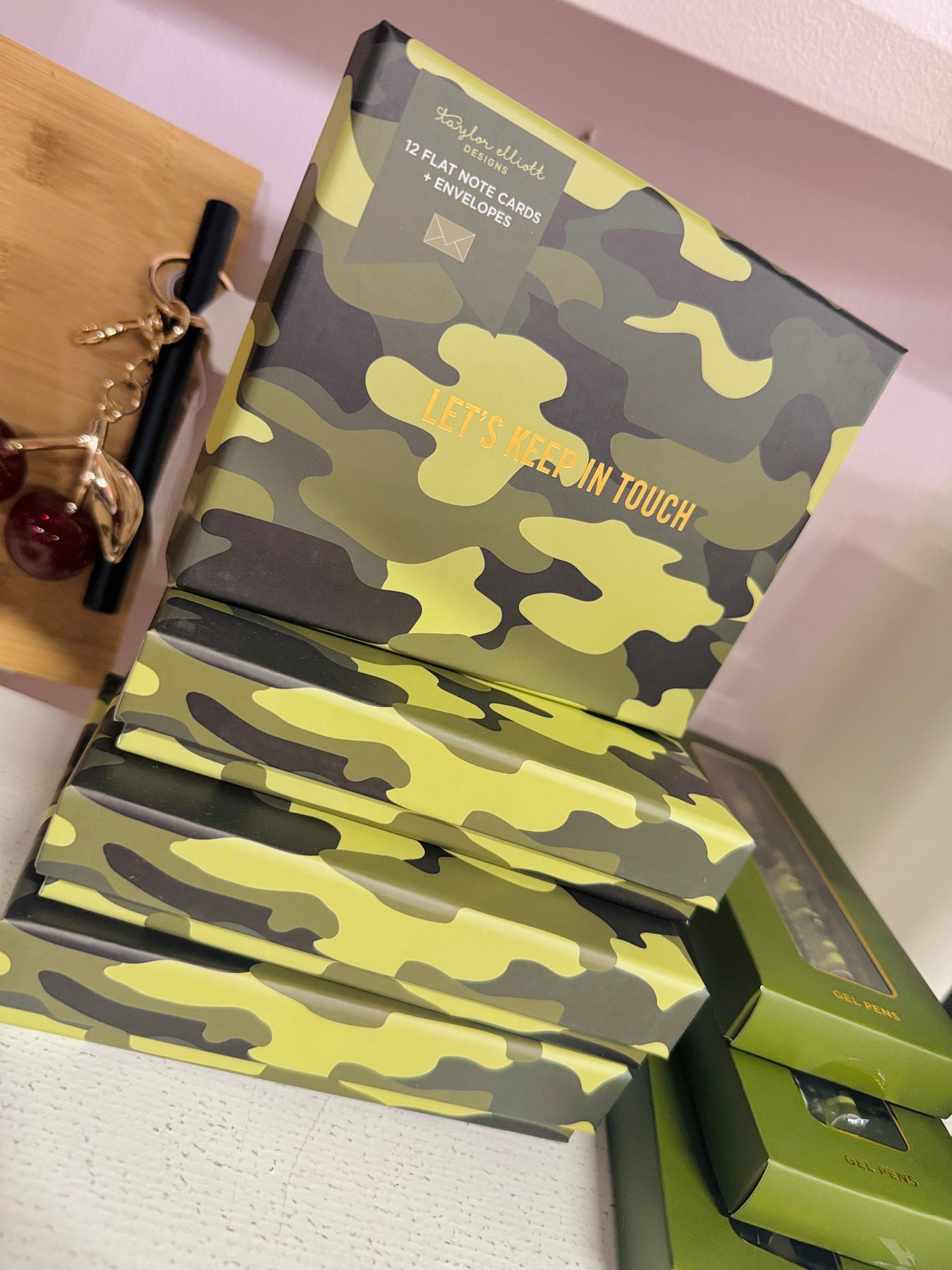 This bold, camouflage & gingham set of 12 note cards are perfect for any man or military member. These cards will make a statement and show just how much someone is truly appreciated.
