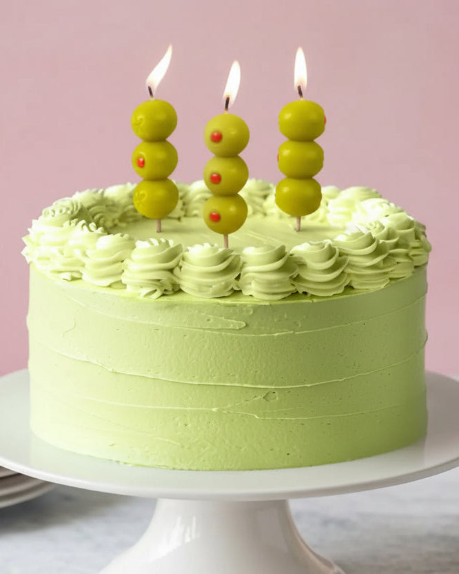 These quirky candles are shaped like classic martini olives and mounted on wooden picks—perfect for shaking up any celebration.