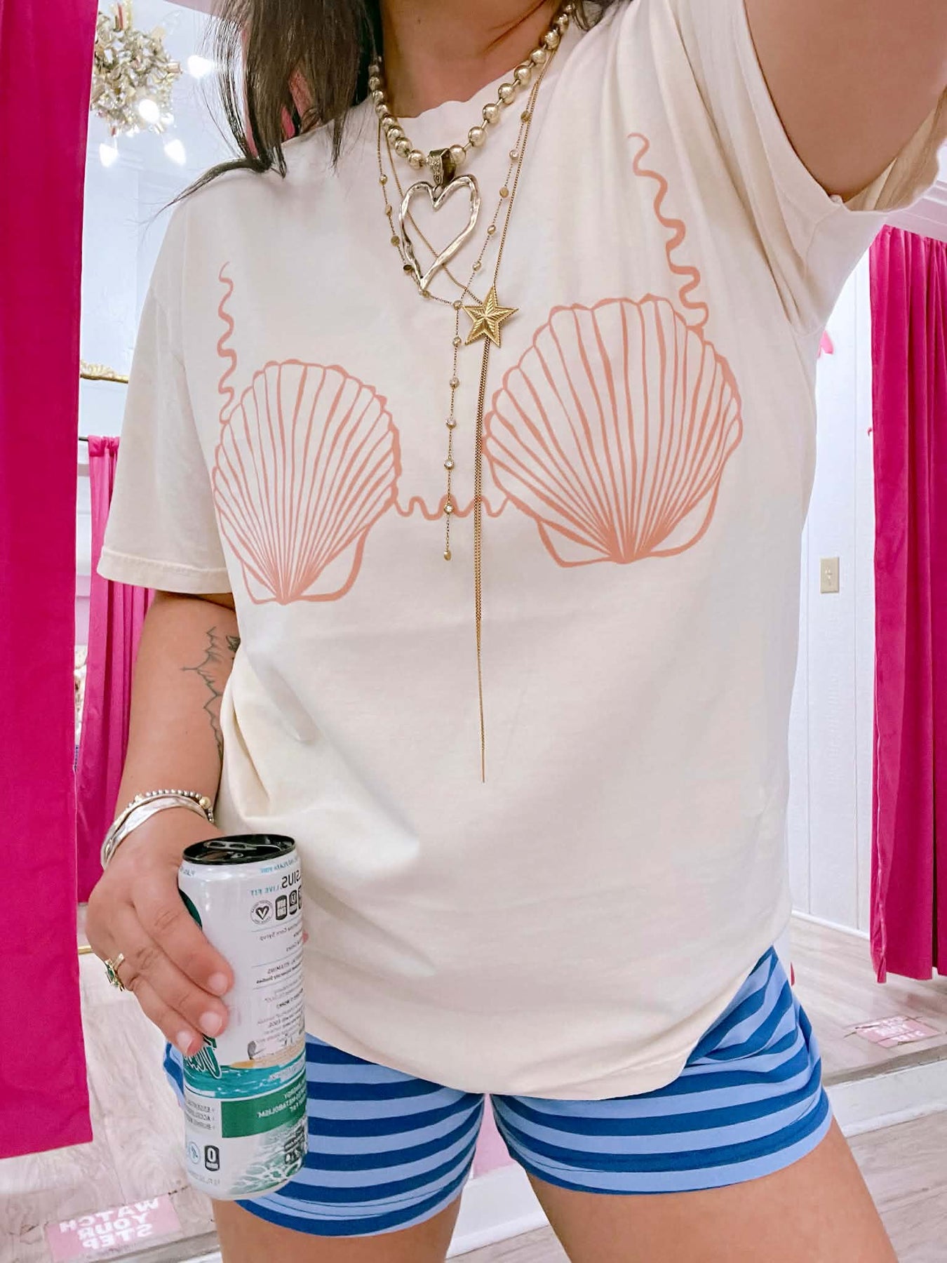 Cute with a little sass, this Seashell Bikini Graphic Tee brings playful energy. Printed on a premium Comfort Colors tee in a rich Ivory shade, it has that perfectly relaxed, lived-in feel.