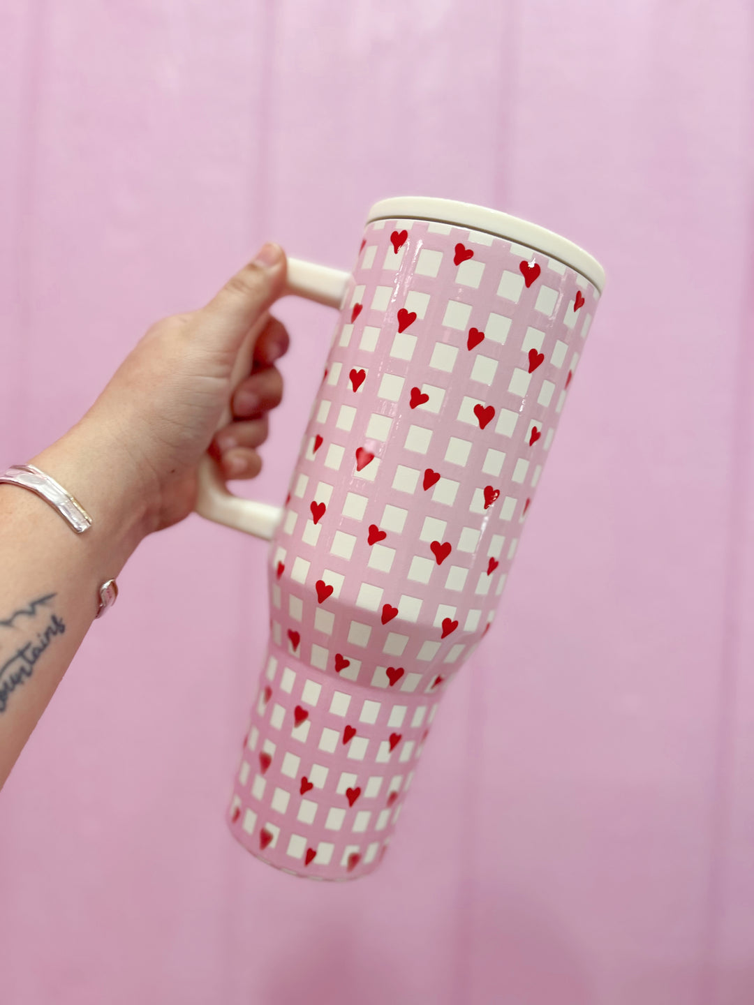 Hearts and Gingham 40oz Spill Free Stainless Steel Tumbler