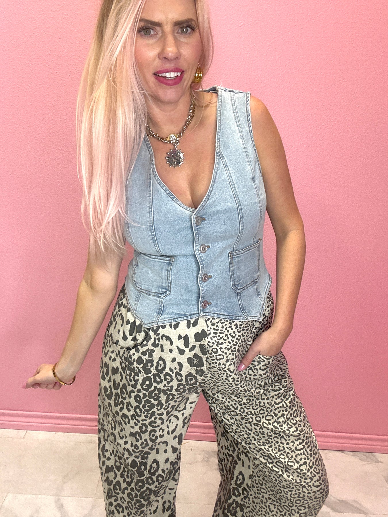 Classic with a cool-girl twist, this denim vest is the perfect layering piece to elevate any outfit. Wear it solo or layered for an effortlessly styled, boutique-ready look.