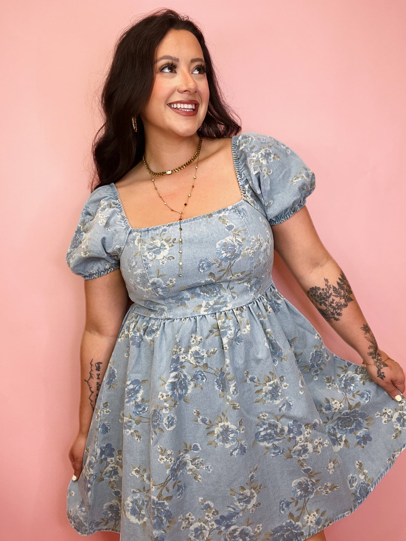 Sweet with a little edge, this denim floral mini brings vintage charm and everyday ease together in one flattering silhouette. It’s the kind of throw-on dress that still looks like you tried.