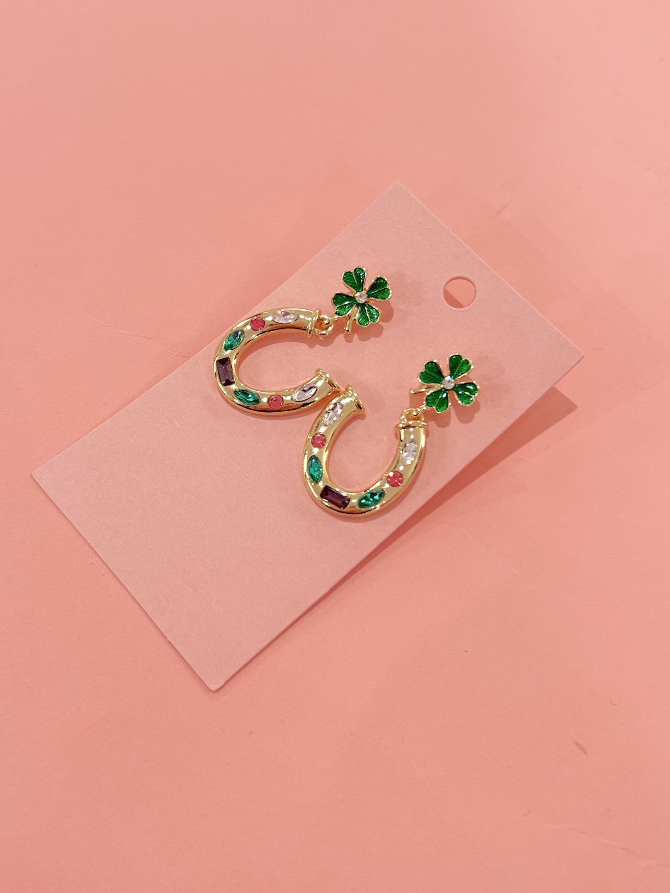 Your new lucky charm is on trend for the season! This adorable horseshoe earring with clover details is going to add some sparkle to any outfit!