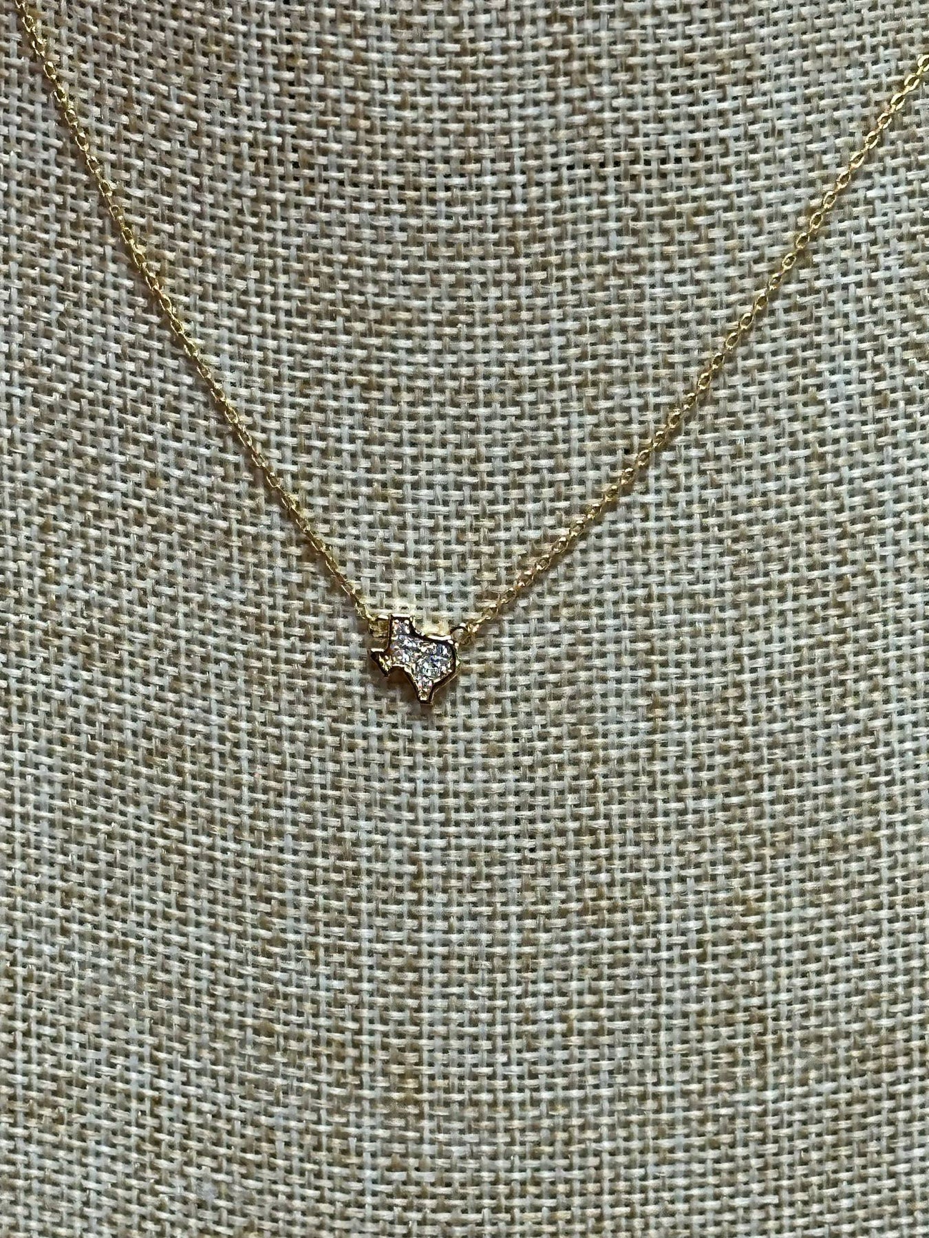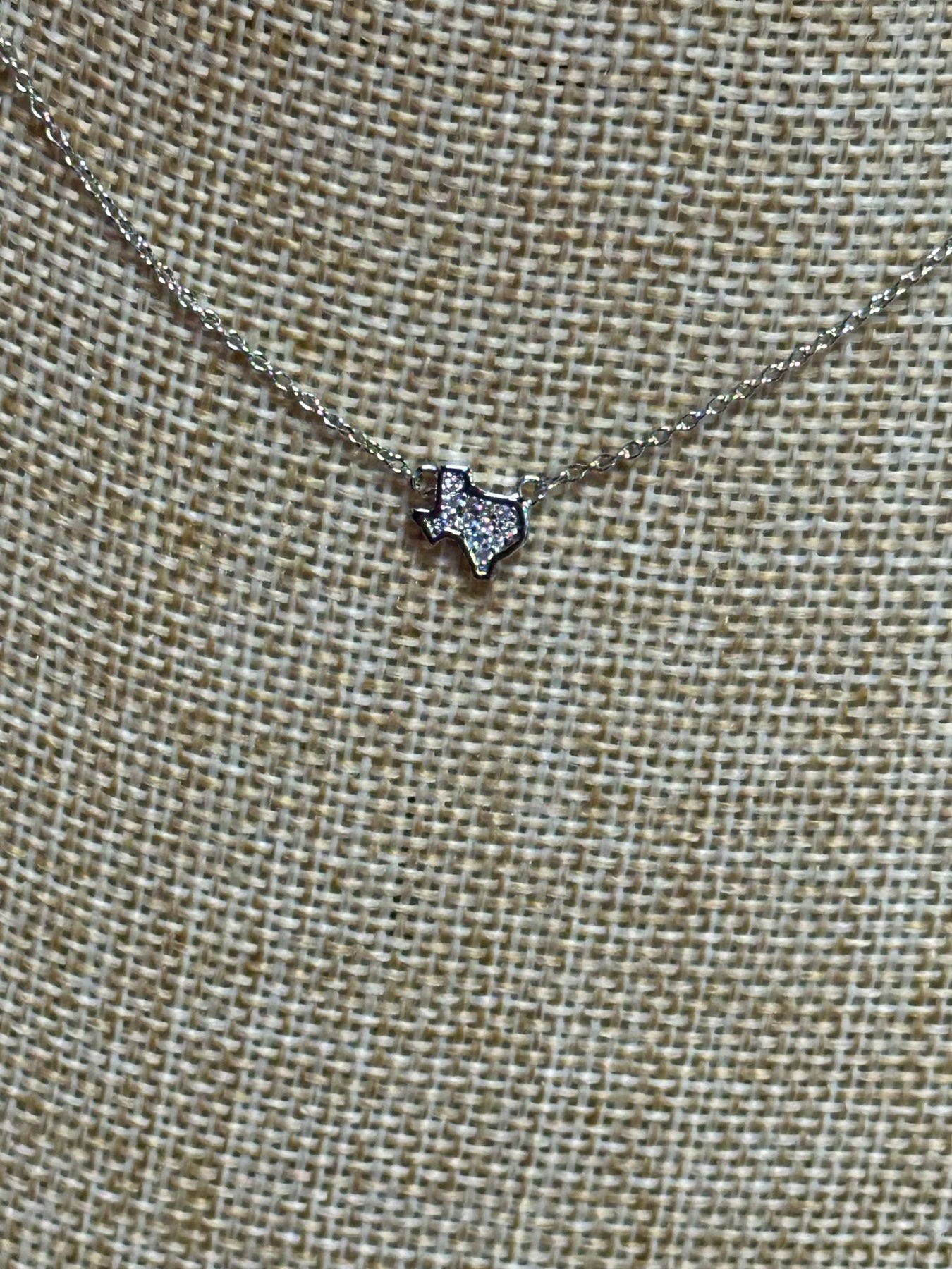 - Tiny Texas-shaped charm with a rhinestone accent in the center