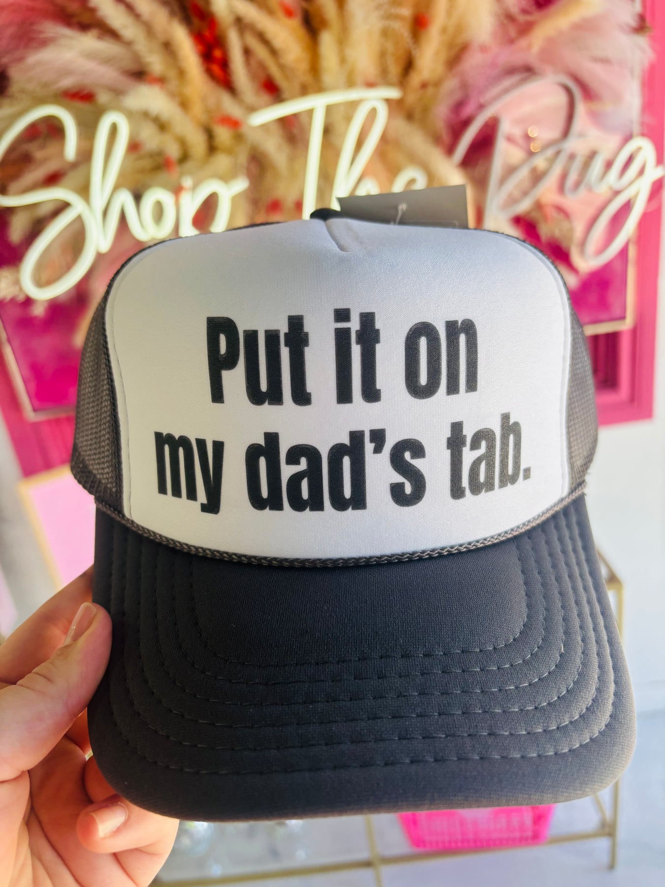 The “Put It On My Dad’s Tab” Trucker Hat is for the girls who know life’s too short to pick up the check. Flirty, funny, and just a little spoiled — it’s the perfect blend of charm and chaos.