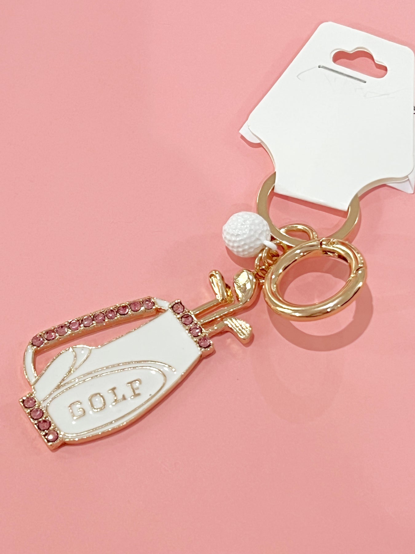 -Charms: gold club bag, golf ball