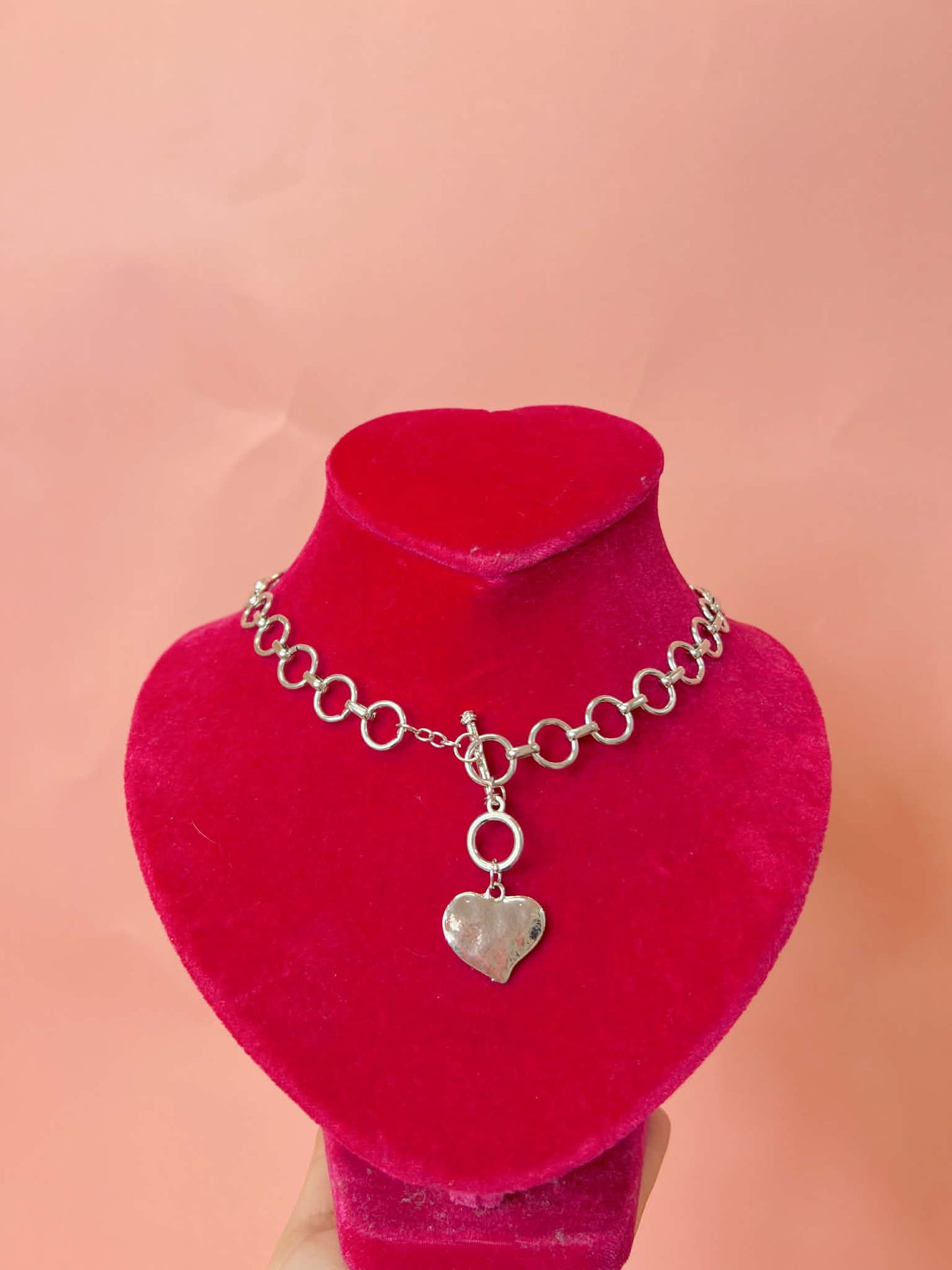 Notable Hammered Heart Front Toggle Necklace is a bold and elegant statement piece with a touch of artisanal charm. Featuring a striking hammered heart pendant, this necklace showcases a textured, handcrafted look that adds depth and uniqueness. The front toggle closure not only ensures easy wear but also enhances the design with a modern touch.