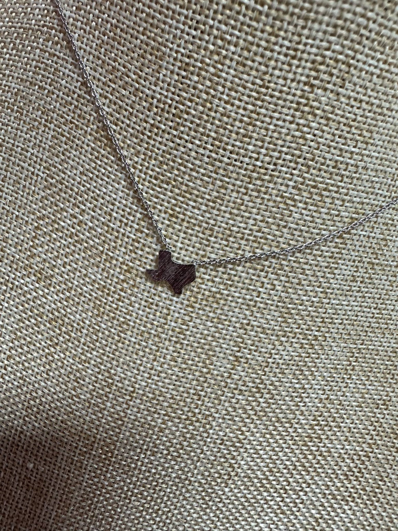 Show off your state pride with this minimalist Texas Charm Necklace, featuring a sleek, solid silhouette of the Lone Star State. Available in gold and silver, it’s a subtle yet meaningful piece perfect for everyday wear.