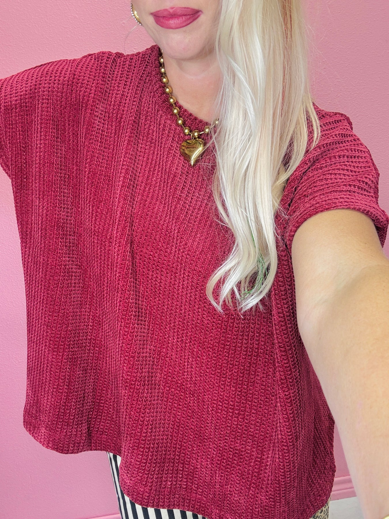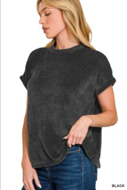 Wrap yourself in cozy texture with this chenille waffle cap-sleeve sweater, crafted for softness and everyday ease. Its relaxed silhouette adds effortless charm to any outfit.