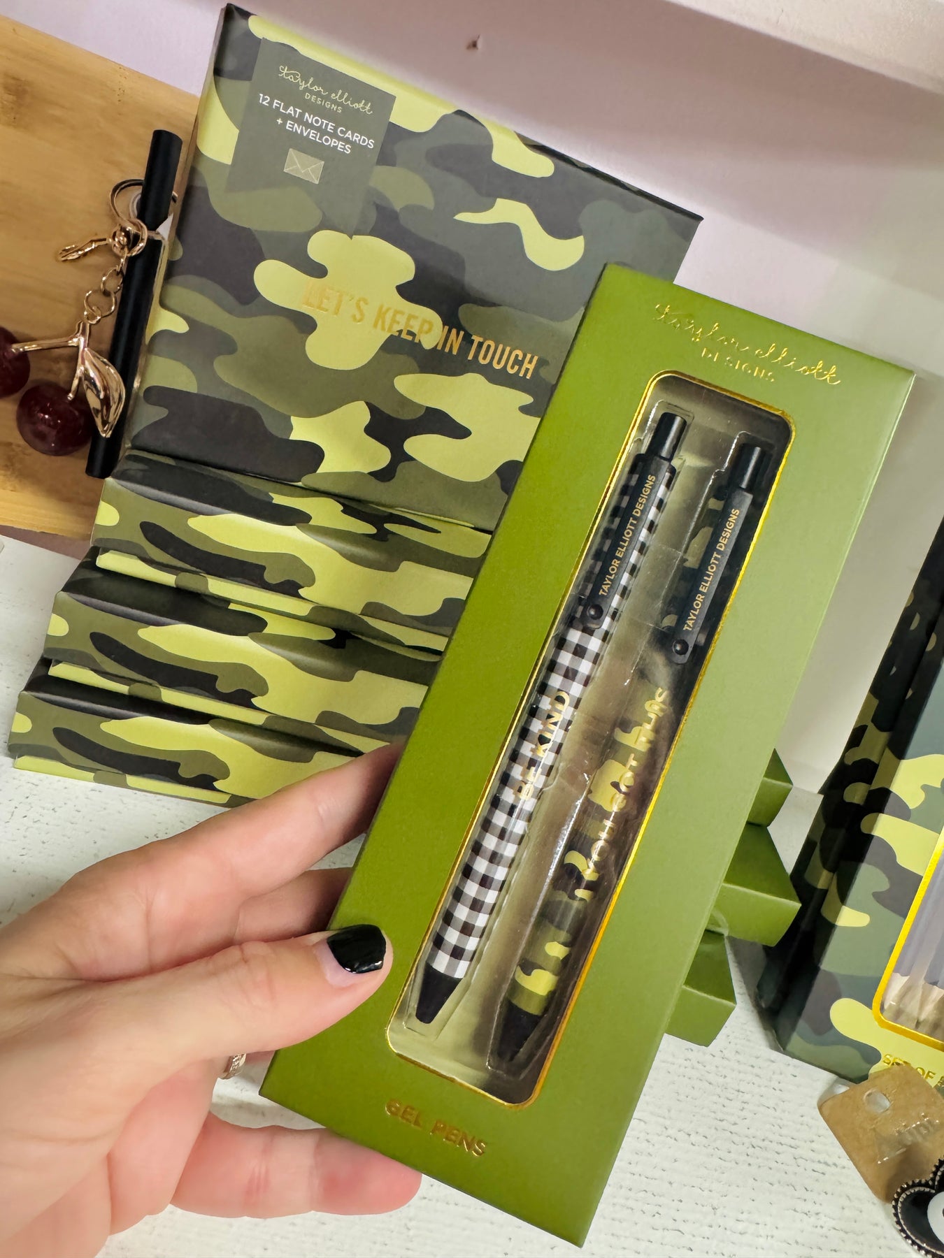 This medium ballpoint pen set comes with 2 patterns (camouflage & gingham), metallic gold foil details and super cute packaging! The motivational messaging on each pen is meant to inspire. Pair this set with the matching note card set to make the gift even more special.