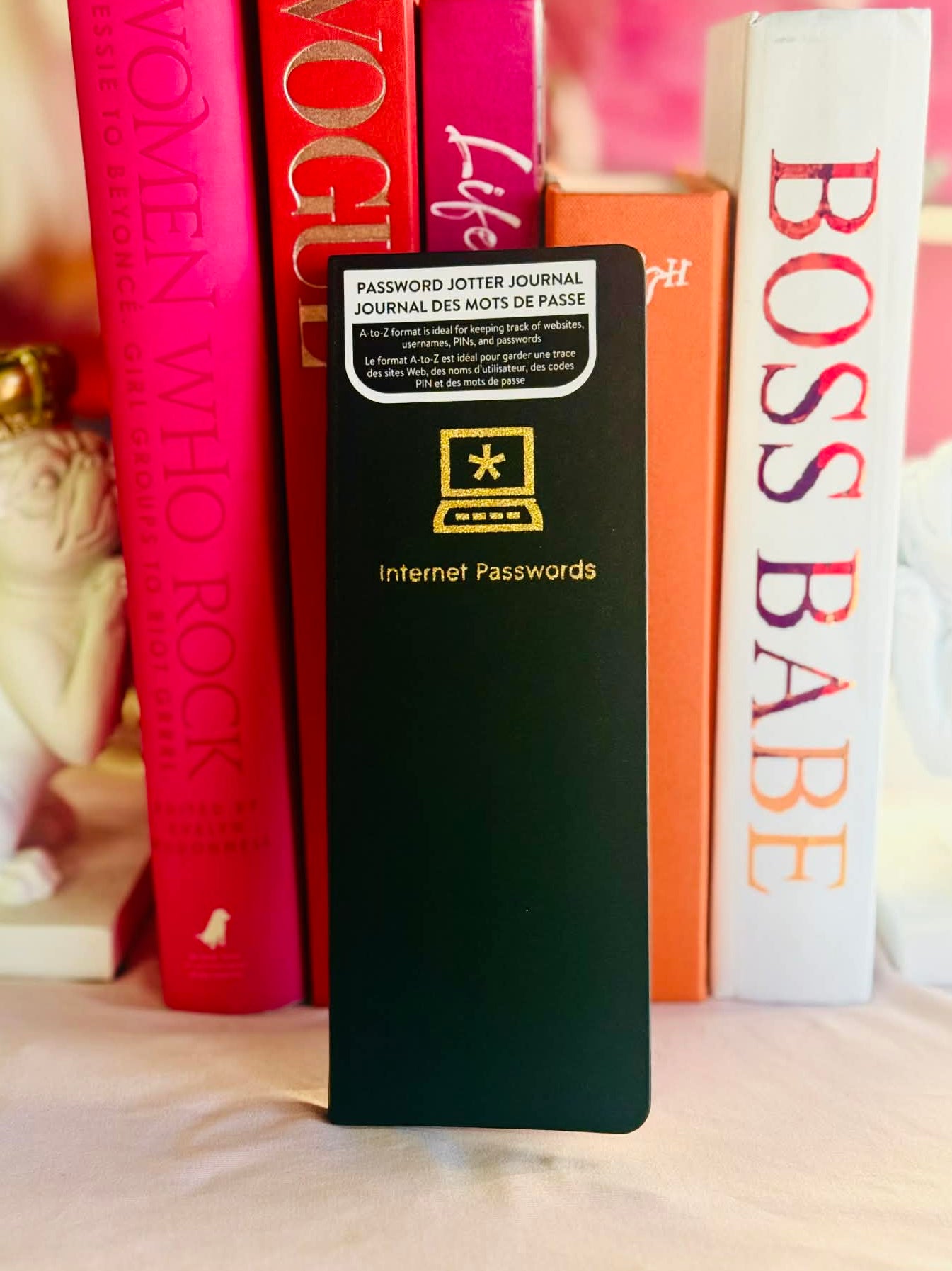 With everything from online shopping to streaming requiring a password, there's never been a greater need to keep track of passwords for easy retrieval. The portable password jotter journal is the perfect tool to keep track of your websites, usernames, PINs, and passwords in one place. The jotter's inconspicuous design discreetly conceals its purpose, and its slim size slips easily into a handbag or backpack.
