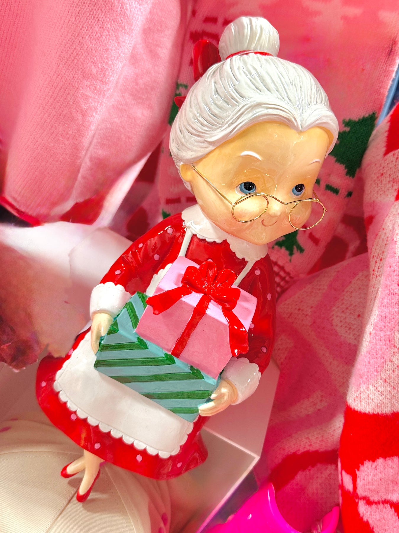 Mrs. Claus is in the house—and she’s ready to sleigh your holiday décor! This 12.75" Sitting Retro Mrs. Claus figurine brings nostalgic charm, colorful detail, and a cozy holiday vibe to any display.
