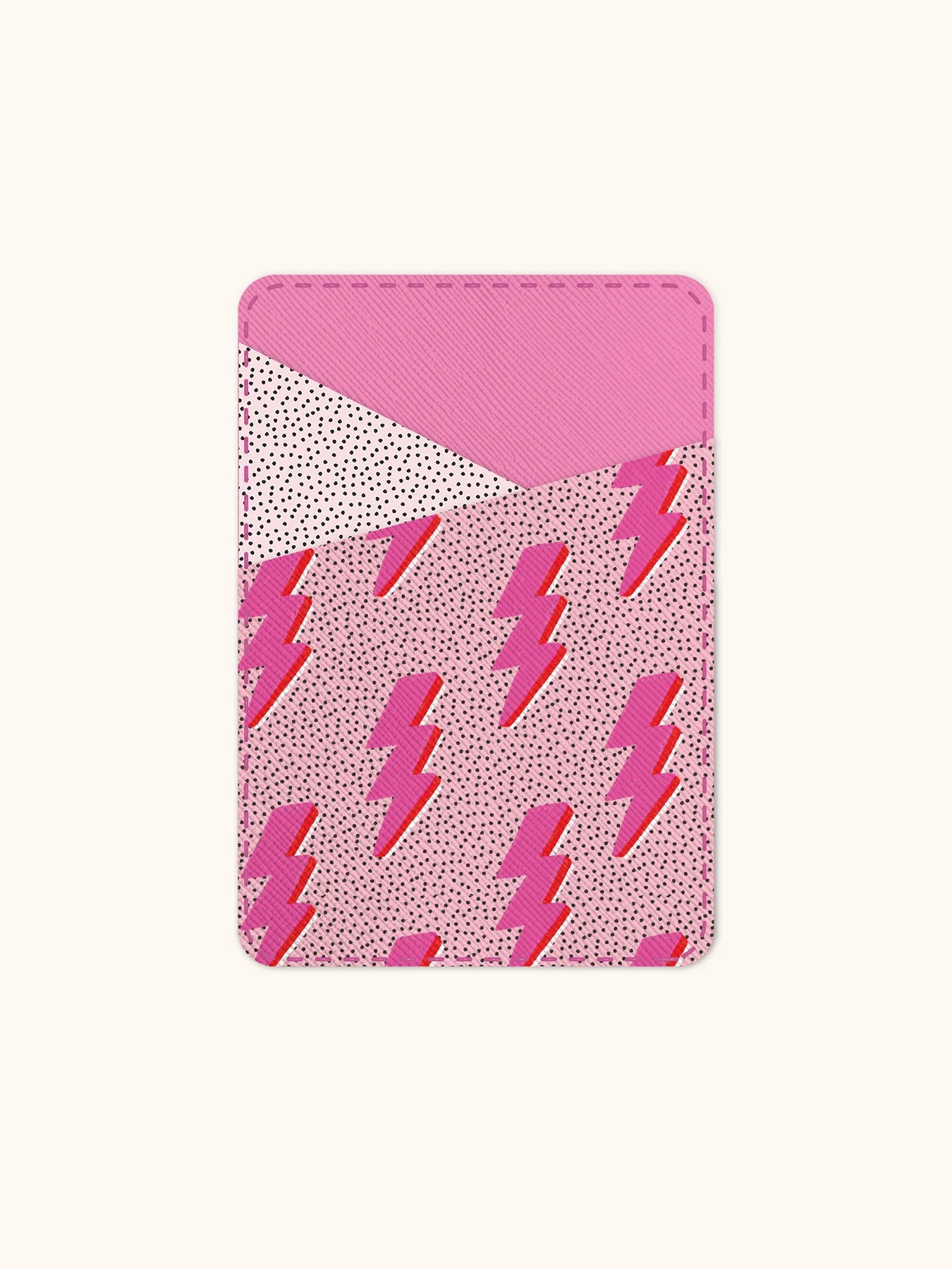 Lightning bolts. Keep your most valuable personal items in one place with this Stick-On Cell Phone Wallet! Each wallet is made of a durable, water-resistant material and features an adhesive backing that easily attaches to a phone case. Two secure sleeves provide room for cash and up to 5 cards.
