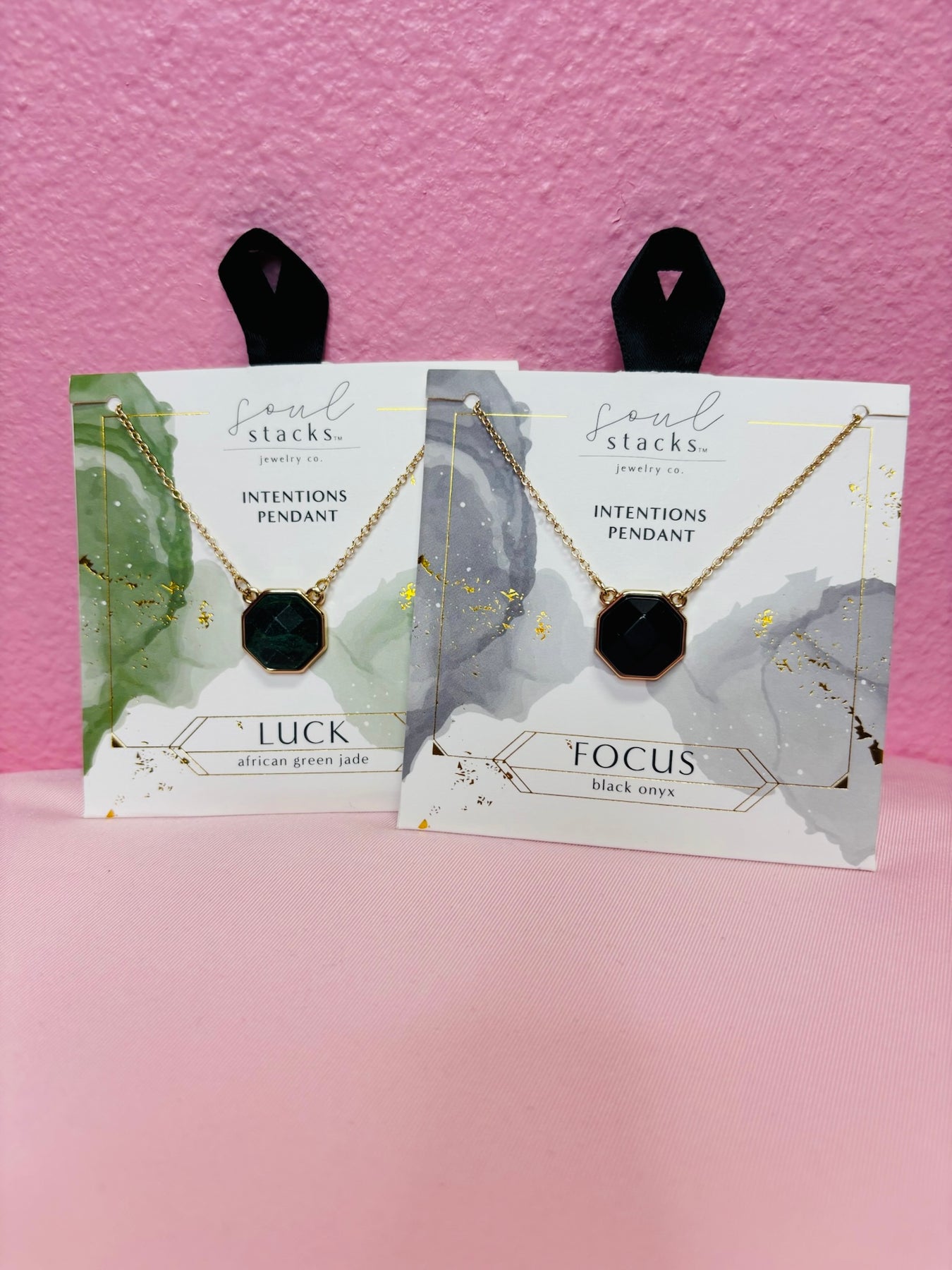 -Setting back is engraved with a one-word intention that coordinates with the mind-body benefits of each stone