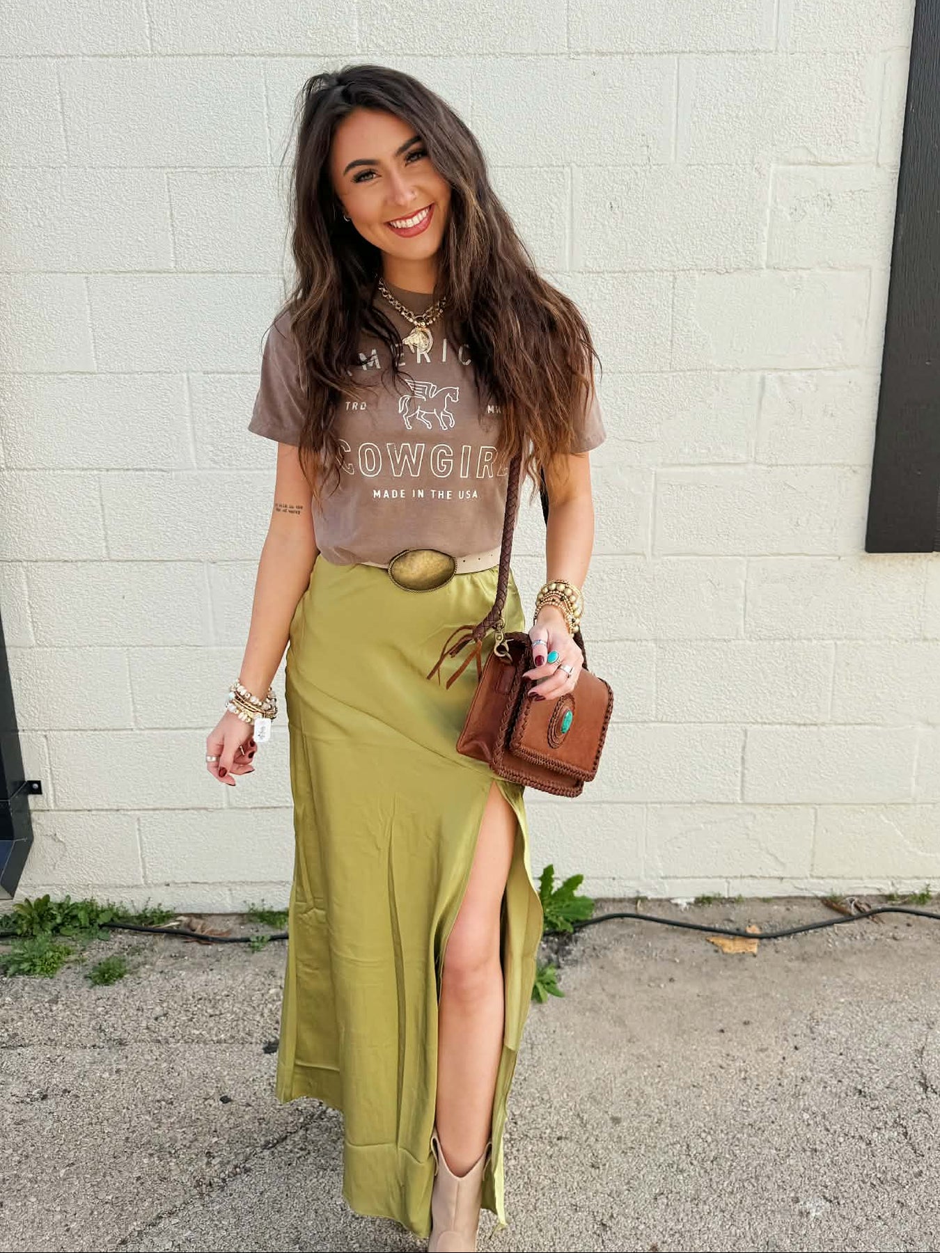 This satin midi skirt brings sleek sophistication with a sassy, modern edge. Featuring an asymmetrical seam and side slit, it’s the perfect statement piece for nights out, boutique styling, or special occasions.