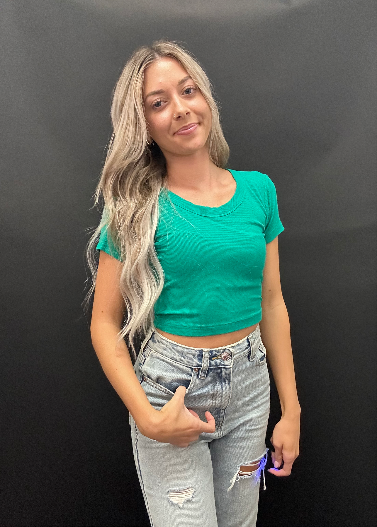 Comfy, cute, and anything but basic 💕 This cropped scoop neck tee is your new everyday fave. Soft, stretchy, and available in multiple bold and neutral colors—it’s made to mix, match, and repeat.