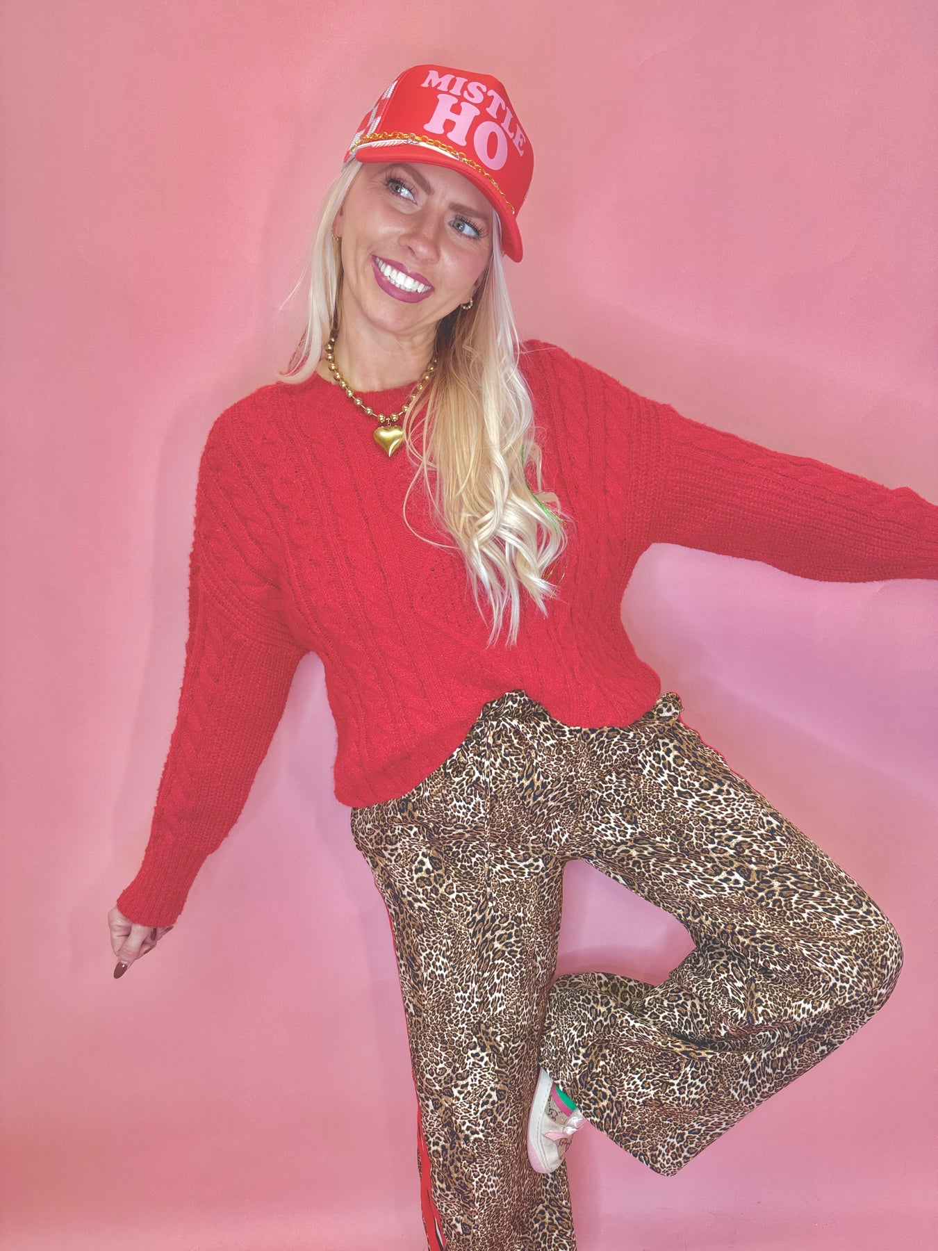 The Arden Red Cable Sweater is a cozy, chunky knit modern essential that elevates any casual outfit. Its relaxed fit and classic cable knit design make it perfect for layering or wearing solo for effortless style.