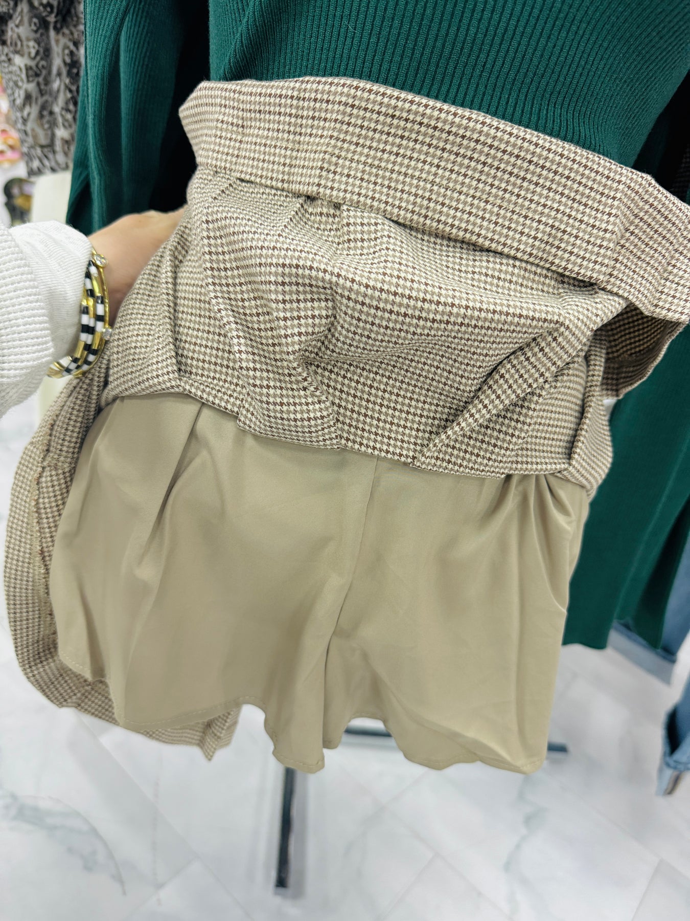 A modern take on a classic silhouette, this high-waisted pleated mini skirt adds instant polish to any outfit. The waist tie and subtle pleats create a flattering, feminine shape you’ll love.